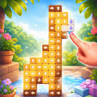 Your goal is to click on the blocks, following the direction of the arrows, to make them disappear from the board. Once all the blocks are gone, you have completed a level. The game features unique artwork that is revealed as you progress through the levels. Each time you eliminate blocks, a new piece of the picture is revealed, completing a different image for every level. The gameplay is similar to the Arrow Slide Puzzle game, where movement is constrained by the direction of the arrows.